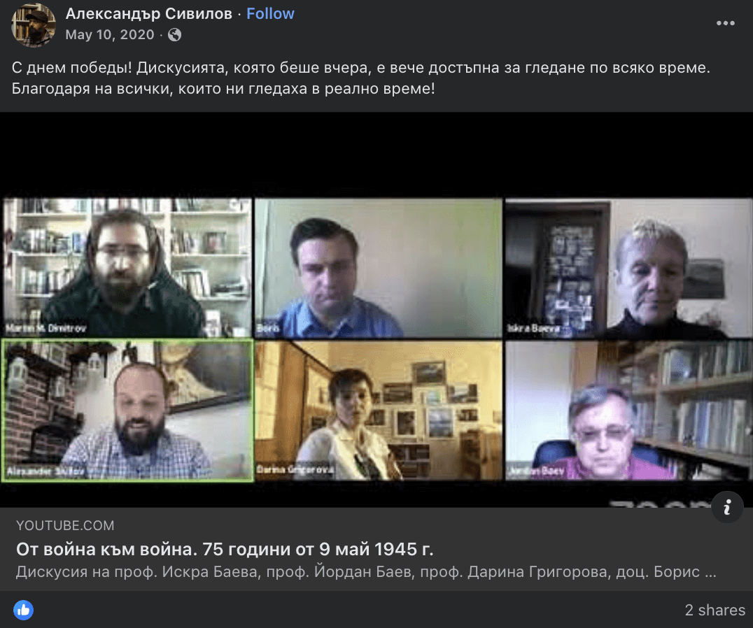 В тази дискусия на 9ти май 2020г. участват Александър Сивилов, Искра Баева, Дарина Григорова и Йордан Баев
